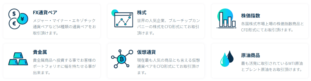 TradersTrustは投資商品数の評判も良く、FX通貨ペアに加え幅広い商品を取引できます。